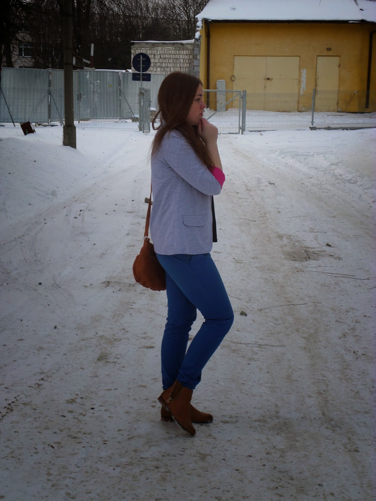 Hi there, thanks for visiting my blog earlier, I love your blog too! This outfit is so cute (even in the snow), I love the blue colour paired with that adorable blazer and those lovely boots :)